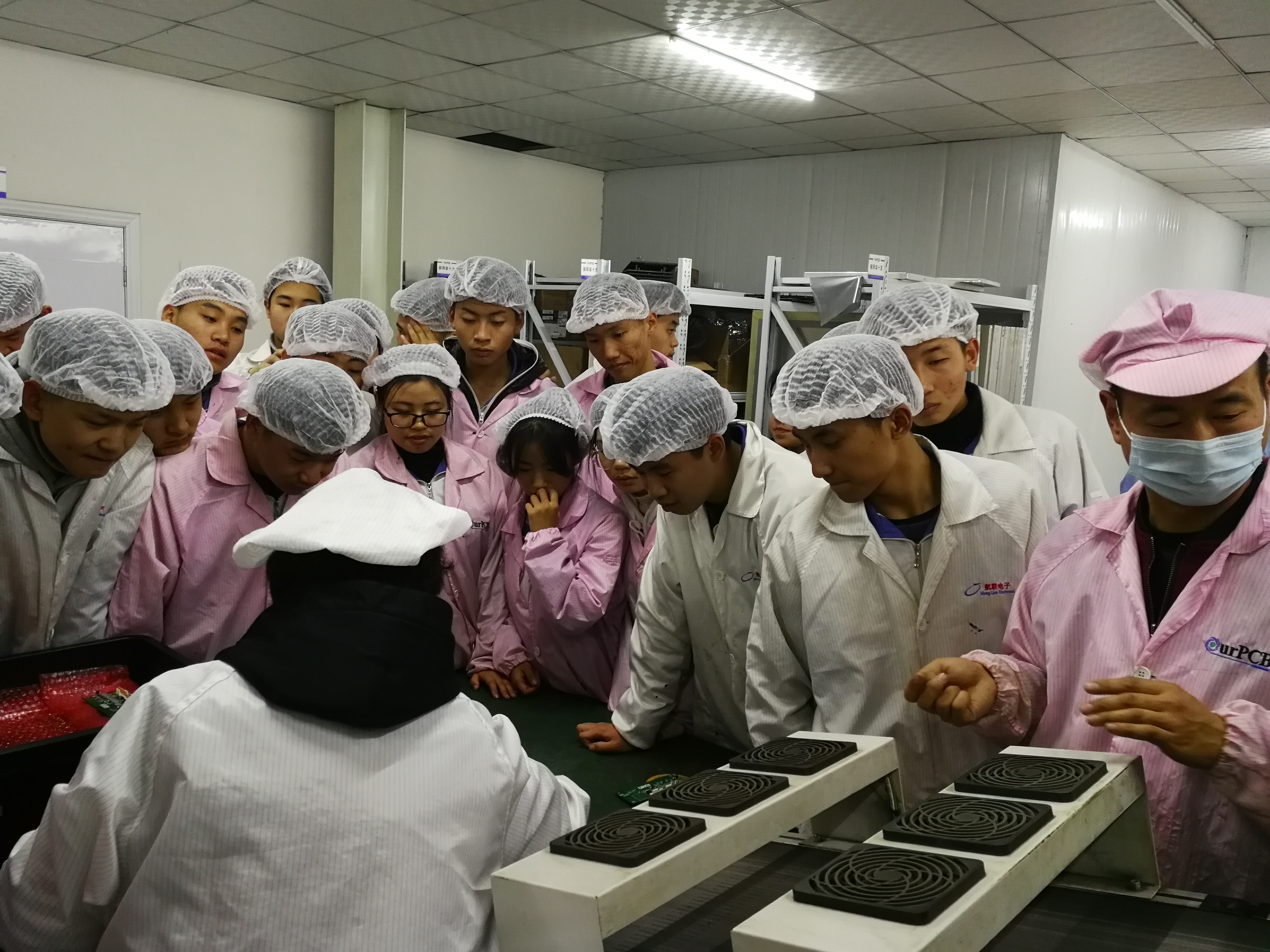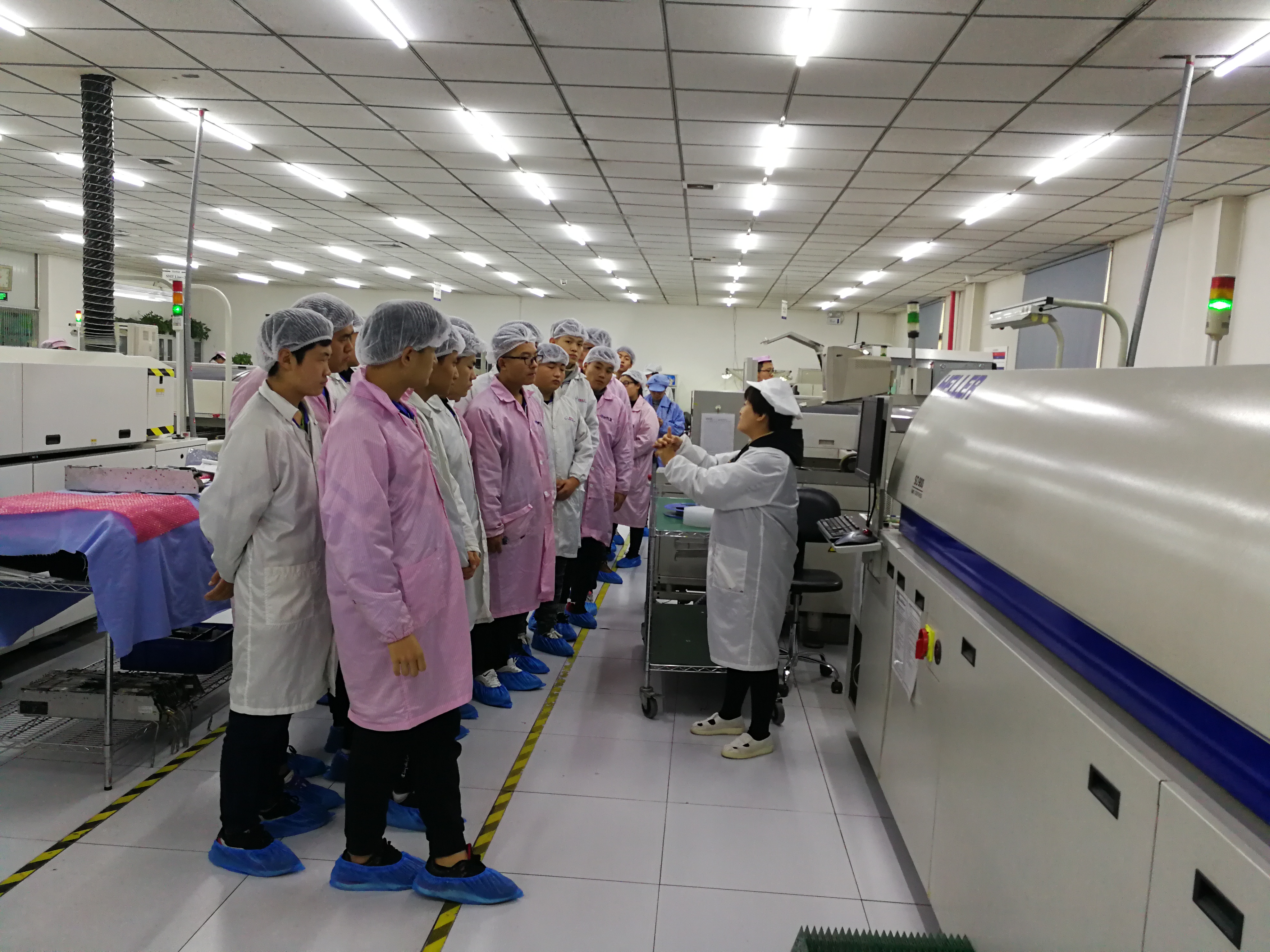 学生观摩回流焊生产线