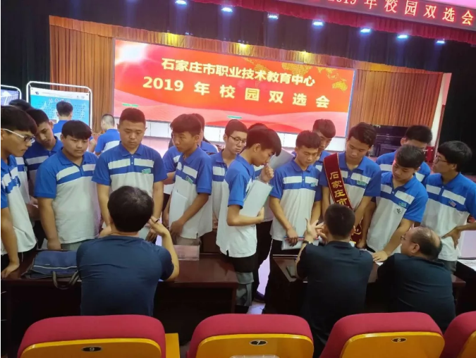 2019年6月19日,石家庄市职教中心校园双选会在学校知行讲堂隆重召开。15余家发展稳定、专业技术领先同行业、社会保障完善的优质企业如中国人民解放军6411军工厂、3302军工厂、北京热风时尚贸易有限公司等参加,提供就业岗位约260个,就业岗位平均月薪达2000元以上。本次双选会涉及数控技术应用、数字媒体技术应用、电子商务三个专业,近120名学生参加了双选会。