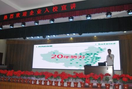 2017年6月13日下午,由招生就业处组织,在石家庄市职教中心知行讲堂成功举办了“企业文化进校园”宣讲会。本次企业宣讲会共有三家知名大型企业参加,分别是北京热风时尚贸易有限公司、河北慧聪电子商务有限公司、石家庄川佰网络科技有限公司。